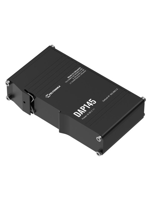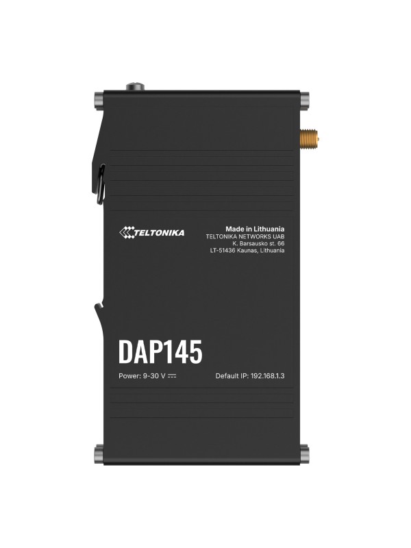 DAP145 wyposażony jest w interfejs Ethernet oraz obsługę zasilania poprzez PoE (Power over Ethernet), co upraszcza instalację i ogranicza konieczność prowadzenia dodatkowego okablowania zasilającego. Urządzenie działa pod kontrolą systemu RutOS (Linux-based), oferując funkcje takie jak VLAN, firewall, QoS, VPN, kontrola dostępu oraz zabezpieczenia WPA2/WPA3, co zapewnia bezpieczną i wydajną transmisję danych.
