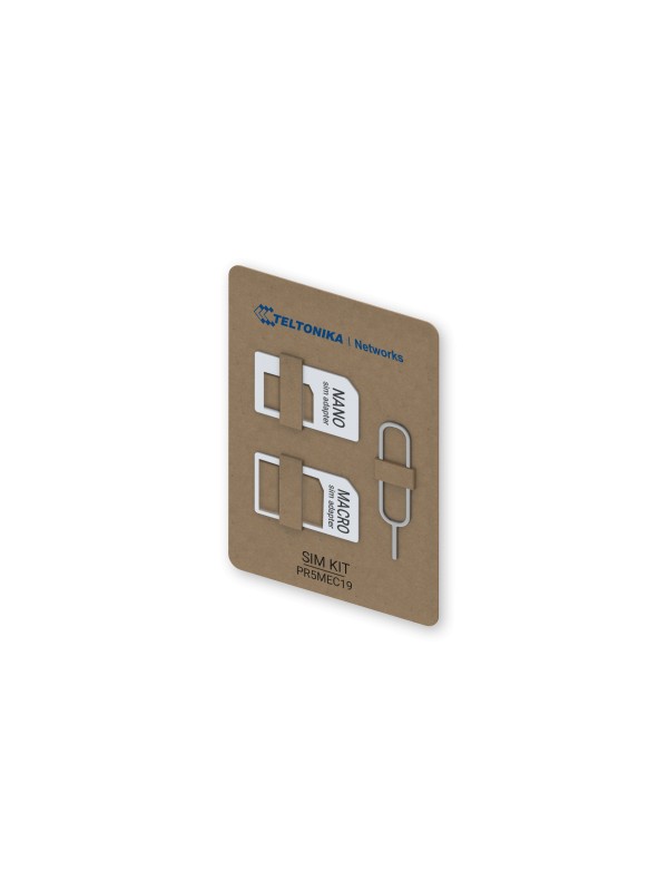 PR5MEC19 to praktyczny zestaw adapterów kart SIM przeznaczony do urządzeń Teltonika. Umożliwia konwersję kart nano SIM oraz micro SIM do większych formatów (micro SIM i standard SIM), co pozwala na łatwe dopasowanie jednej karty do różnych urządzeń bez konieczności jej wymiany. Zestaw zapewnia stabilne i bezpieczne osadzenie karty SIM, minimalizując ryzyko uszkodzenia podczas montażu.