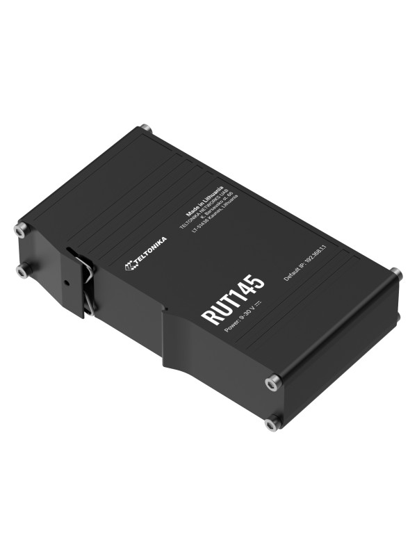 RUT145 to przemysłowy router Ethernet przeznaczony do integracji urządzeń komunikujących się po magistrali RS485 z siecią IP. Urządzenie nie posiada modemu komórkowego i pełni funkcję lokalnego węzła komunikacyjnego, umożliwiając konwersję protokołów szeregowych (np. Modbus RTU) na TCP/IP. Dzięki temu może być stosowane jako brama komunikacyjna pomiędzy systemami automatyki a infrastrukturą sieciową lub systemami nadrzędnymi.