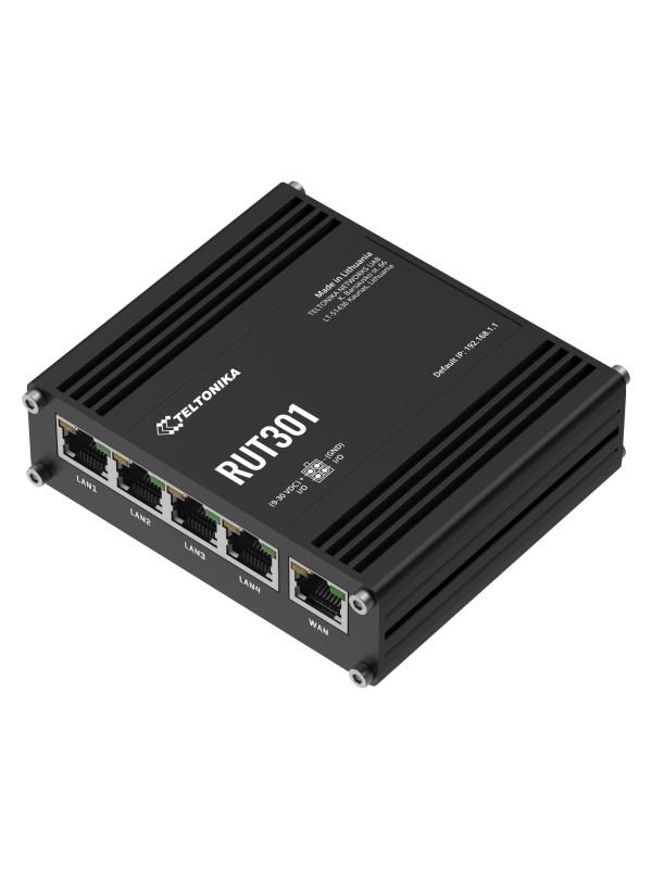 RUT301 to przemysłowy router Ethernet do stabilnej komunikacji przewodowej w sieciach przemysłowych.