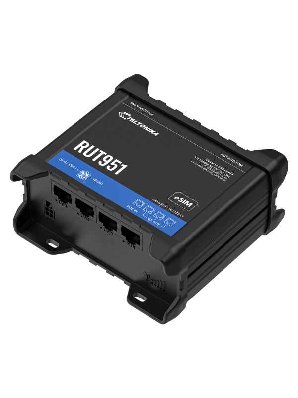 RUT951 PoE to router LTE zasilany przez Ethernet, idealny do instalacji wymagających prostego okablowania.